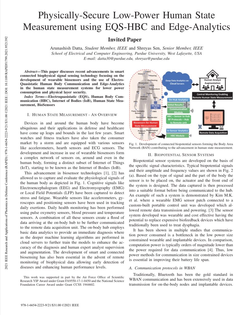 Physically-Secure Low-Power Human State Measurement using EQS-HBC and Edge-Analytics. Quasistatic Human Body Communication.
