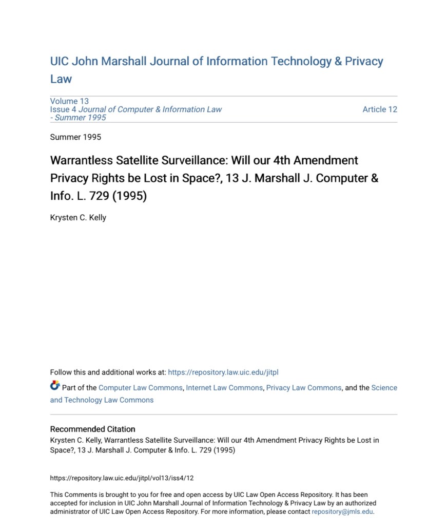 Privacy Rights be Lost in Space?, 13 J. Marshall J. Computer & Privacy Rights be Lost in Space?, 13 J. Marshall J. Computer & info