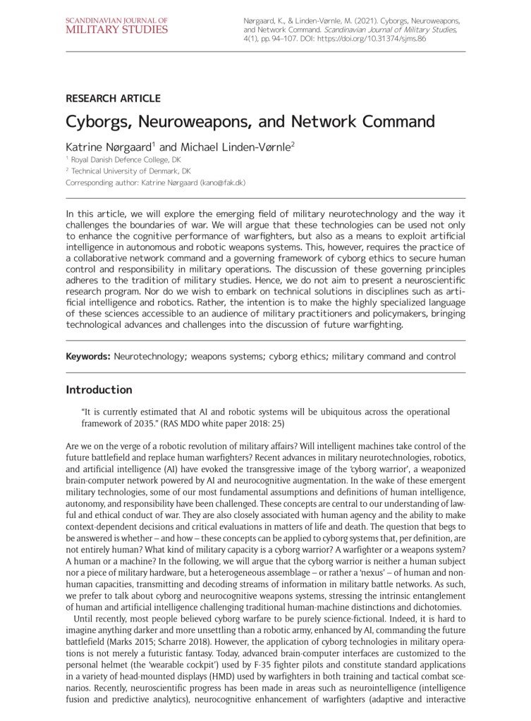 cyborg ethics to secure humancontrol and responsibility in military operations.