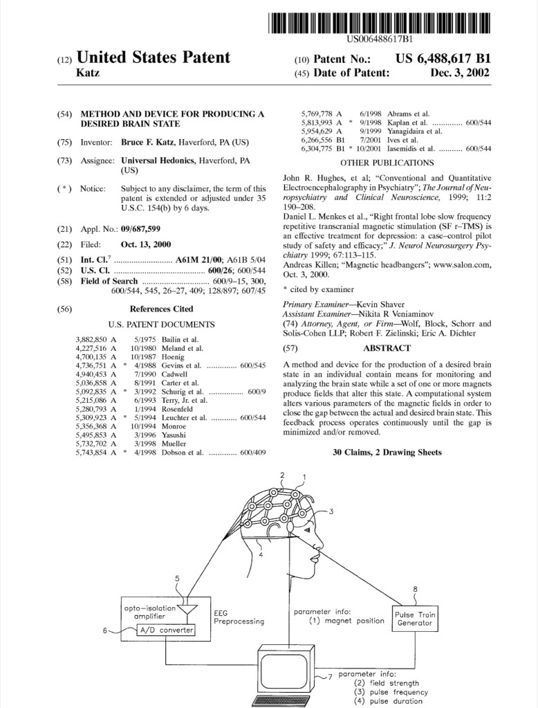 A method and device for the production of a desired brain state in an individual contain means for monitoring and analyzing the brain state while a set of one or more magnets produce fields that alter this state.