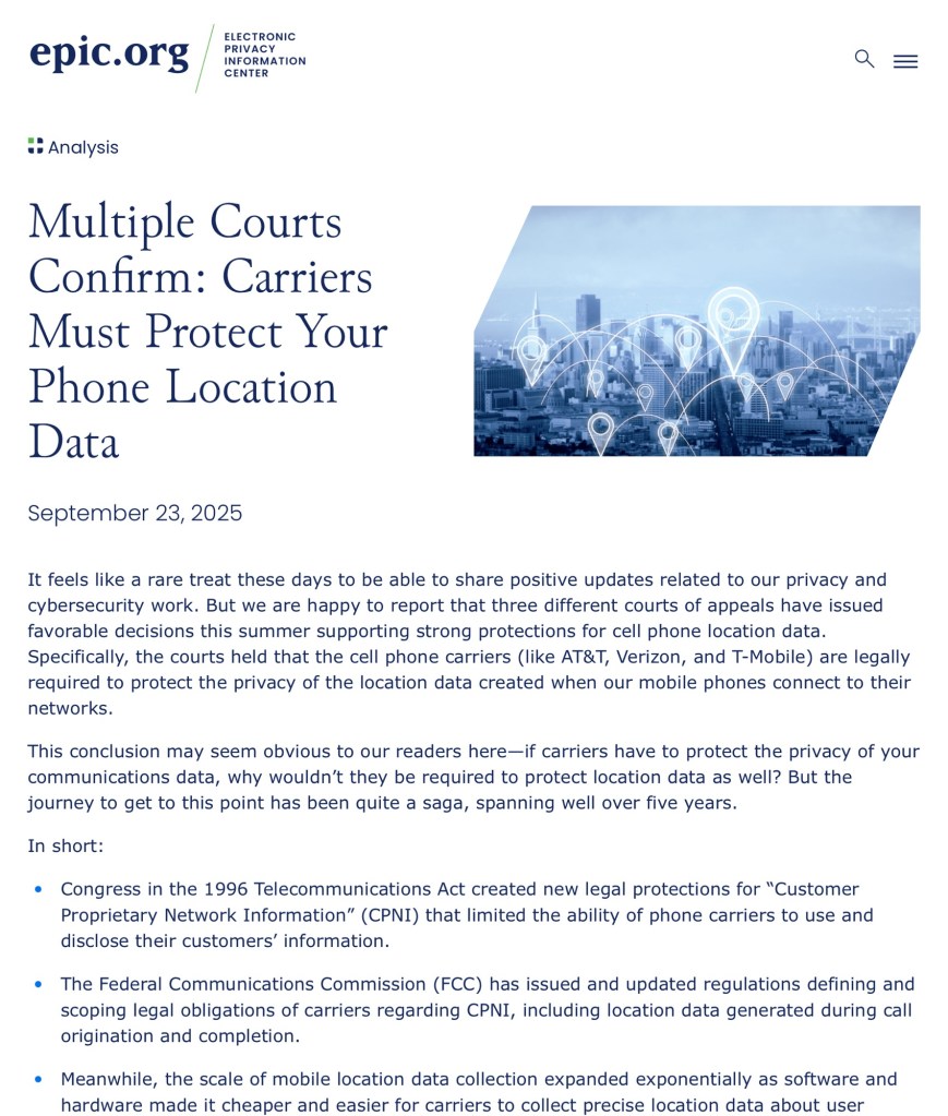 Location data is generated by phone subscribers unavoidably—whether you are actively on a call or not, your device is regularly connecting to nearby cell towers to ensure you have service when a call comes through—and it is extremely sensitive information. As the Supreme Court described in 2012 in United States v. Jones, the sequence of a person’s movements can reveal