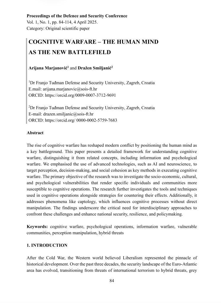 ‘Dr Franjo Tudman Defense and Security University, Zagreb, Croatia E.mail: arijana.marjanovic@sois-ft.hr