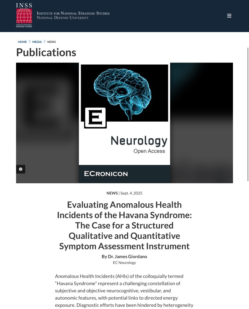 https://inss.ndu.edu/Media/News/Article/4293362/evaluating-anomalous-health-incidents-of-the-havana-syndrome-the-case-for-a-str/By Dr. James GiordanoEC Neurology