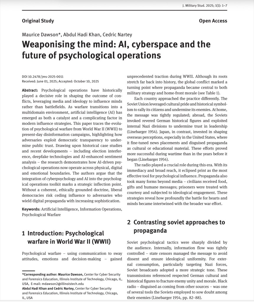 🧠Weaponising the mind: Al, cyberspace and the future of psychological operations