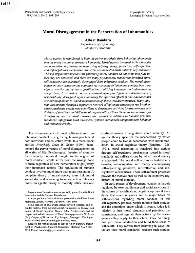 Albert Bandura, Department of Psychology Stanford University