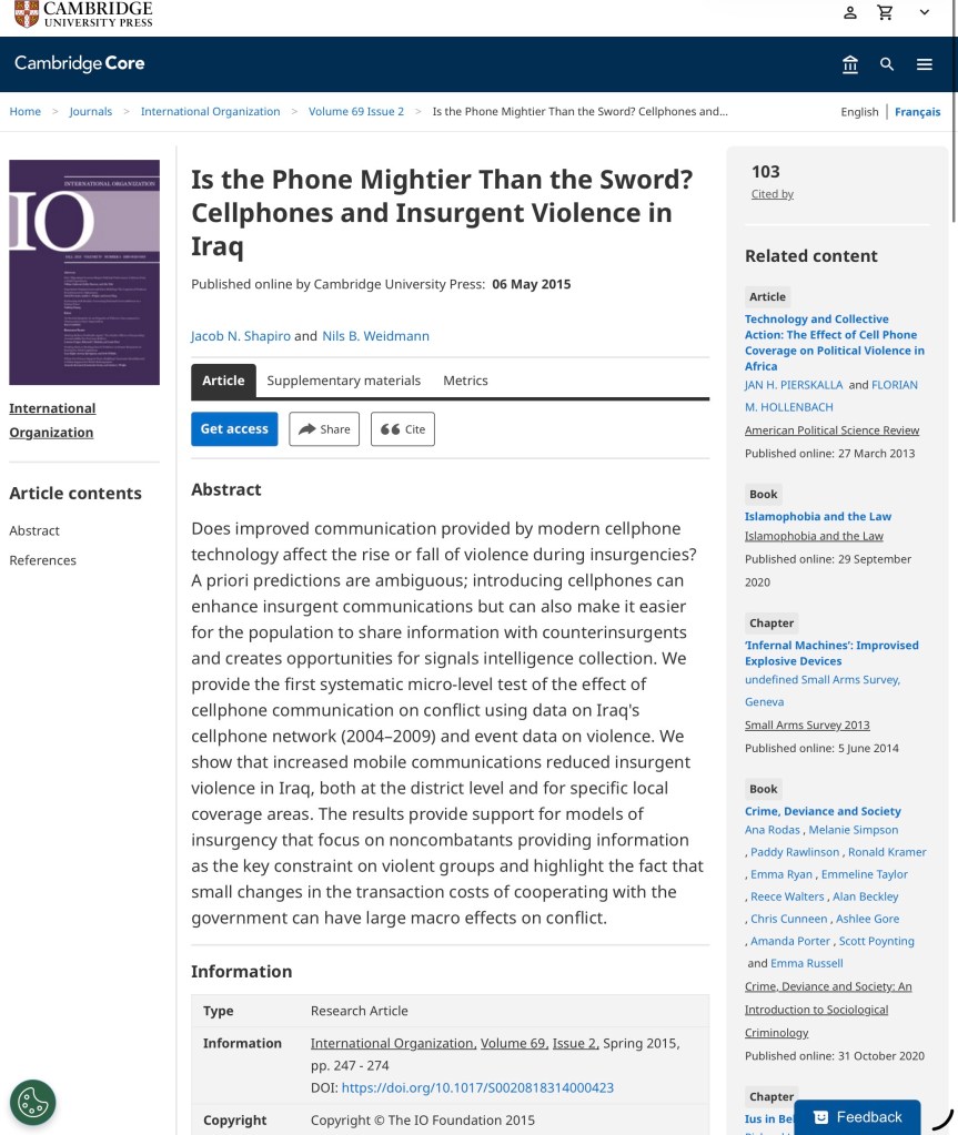 📱Is the Phone Mightier Than the Sword? Cellphones and Insurgent Violence in Iraq