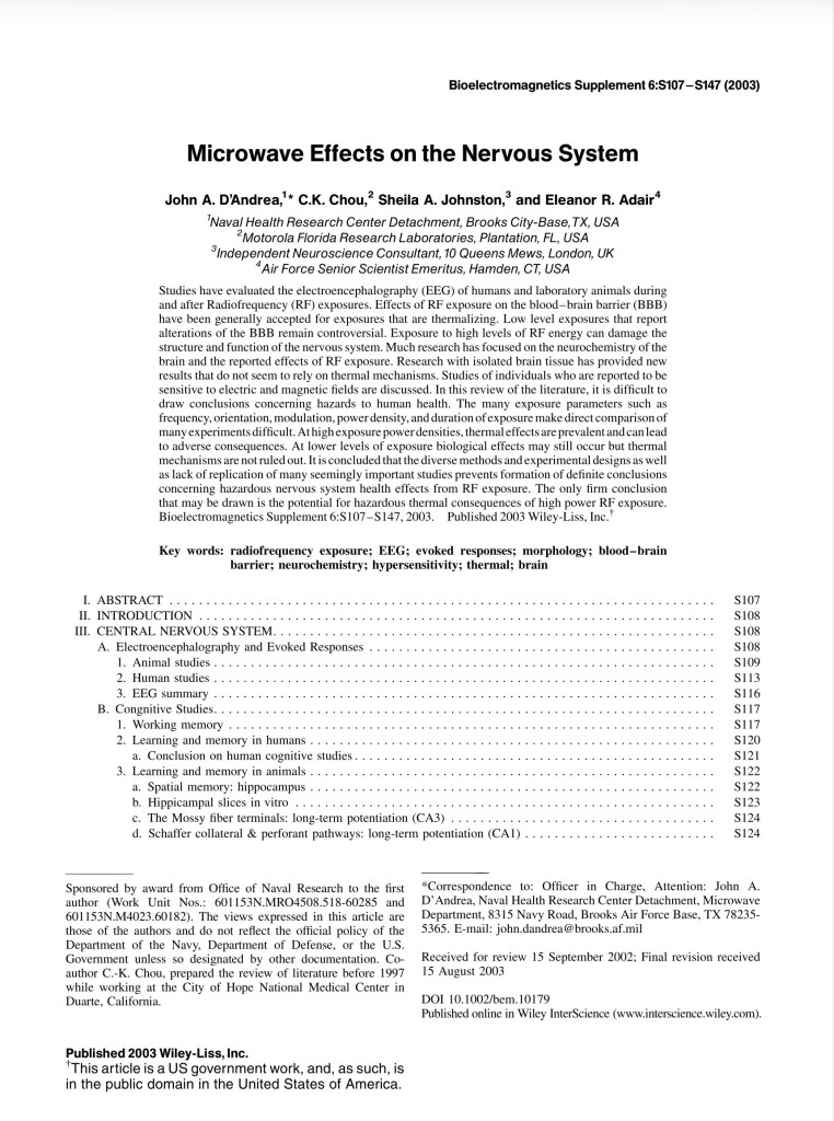 🪖Microwave Effects on the Nervous System Air Force Senior Scientist Emeritus, Hamden, CT,