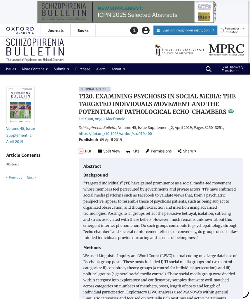 (TI) EXAMINING PSYCHOSIS IN SOCIAL MEDIA: THE TARGETED INDIVIDUALS MOVEMENT AND THE POTENTIAL OF PATHOLOGICAL ECHO-CHAMBERS