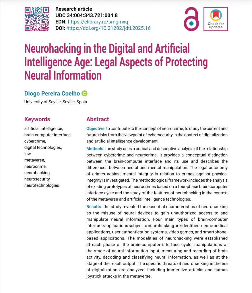 Neurohacking in the Digital and Artificial Intelligence Age: Legal Aspects of Protecting