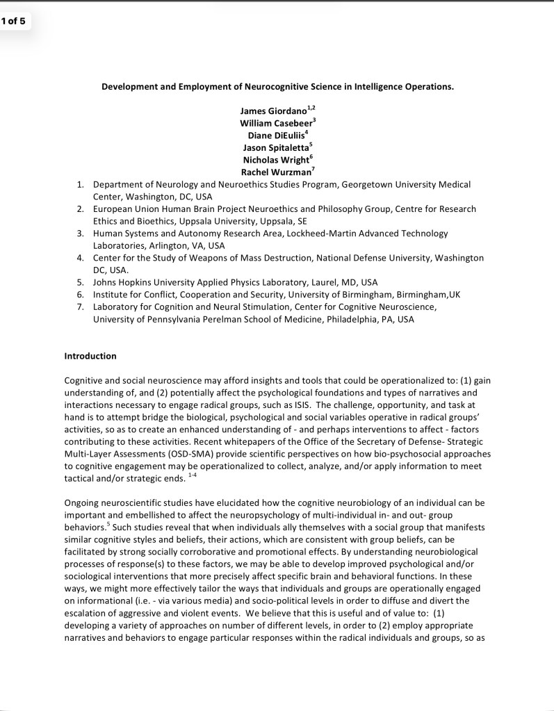 🧠Development and Employment of Neurocognitive Science in Intelligence Operations.